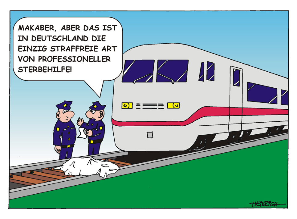 Sterbende Menschen sind mehr als sterbend. Kein Mensch will in seiner letzten Lebensphase nur auf dieser Ebene wahrgenommen werden.» Das erleben wir bei DIGNITAS in unserer Beratungstätigkeit und bei Freitodbegleitungen seit Jahren auch so. Was man als lustig empfindet, ist individuell, persönliche Geschmacksache. Wer der Meinung ist, Humor hätte am Lebensende keinen Platz, der möge diese Seite verlassen. Alle anderen finden hier eine kleine Auswahl an tiefgründigem Humor, beissender Satire, Situationskomik, politisch (un)korrekte Seitenhiebe, usw. in Sprüchen, Karikaturen und Videos. Der Tod ist doch das Letzte!